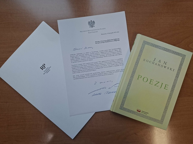 Miejska i Powiatowa Biblioteka Publiczna im. prof. Jerzego Markiewicza w Biłgoraju otrzymała od Prezydenta Rzeczypospolitej Polskiej Karola Nawrockiego podziękowanie dla wszystkich uczestników i organizatorów tegorocznej akcji Narodowego Czytania.