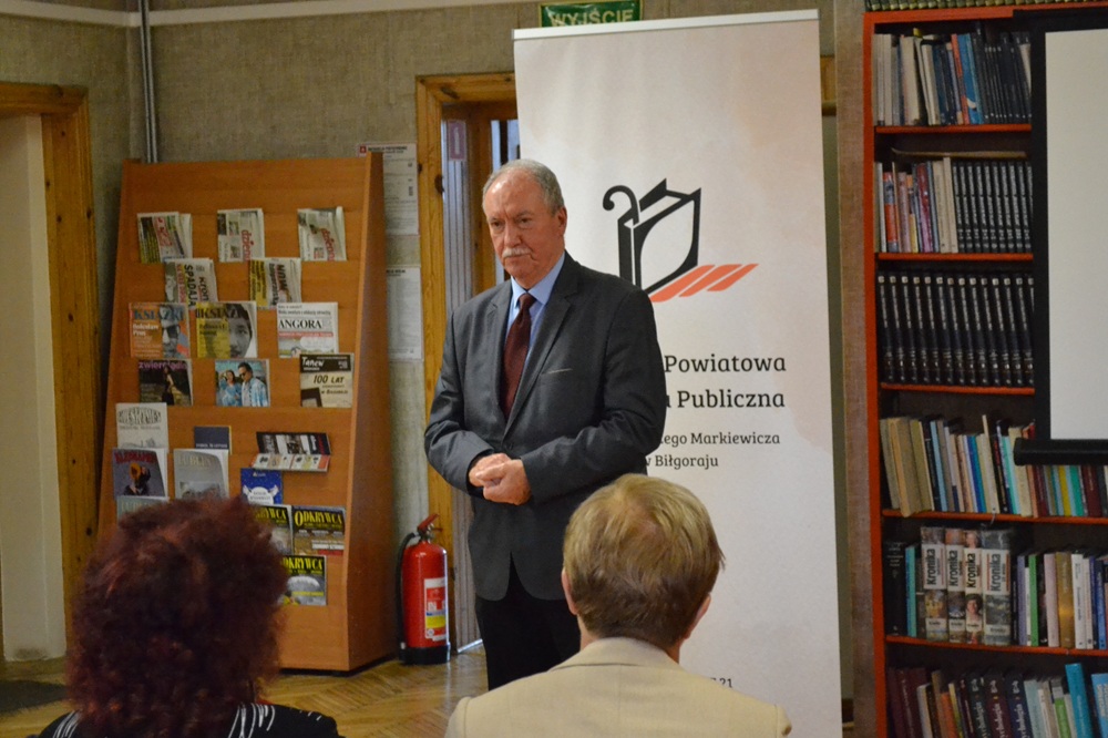 11 września br. w Miejskiej i Powiatowej Bibliotece Publicznej im. prof. Jerzego Markiewicza w Biłgoraju odbyło się seminarium poświęcone pamięci patrona biblioteki. Wśród zaproszonych gości byli min.: dr Dorota Skakuj z Muzeum Ziemi Biłgorajskiej, dr Arkadiusz Adamczuk z KUL Jana Pawła II, dr Agnieszka Szykuła – dyr. BPG Łabunie im. A. Szeptyckiego, którzy wystąpili z referatami tematycznie powiązanymi z działalnością prof. Markiewicza. Ponadto w spotkaniu uczestniczyli przedstawiciele instytucji, urzędów, szkół, bibliotek oraz osoby bezpośrednio związane z prof. Markiewiczem – przyjaciele, znajomi.