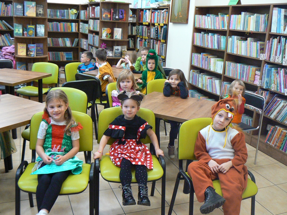 Bibliotekę dla Dzieci odwiedziły przedszkolaki z Samorządowego Przedszkola Nr 1 w przebraniach ulubionych postaci bajkowych. Było głośne czytanie, oglądanie książeczek z postaciami ze znanych dziecięcych filmów i rozmowy o ulubionych bajkach.