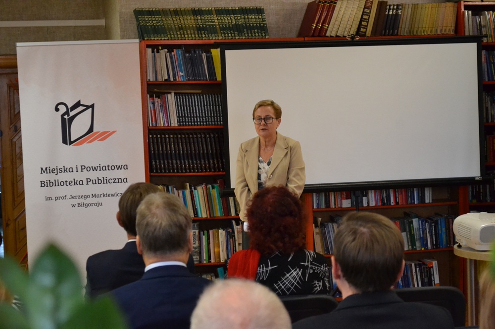 11 września br. w Miejskiej i Powiatowej Bibliotece Publicznej im. prof. Jerzego Markiewicza w Biłgoraju odbyło się seminarium poświęcone pamięci patrona biblioteki. Wśród zaproszonych gości byli min.: dr Dorota Skakuj z Muzeum Ziemi Biłgorajskiej, dr Arkadiusz Adamczuk z KUL Jana Pawła II, dr Agnieszka Szykuła – dyr. BPG Łabunie im. A. Szeptyckiego, którzy wystąpili z referatami tematycznie powiązanymi z działalnością prof. Markiewicza. Ponadto w spotkaniu uczestniczyli przedstawiciele instytucji, urzędów, szkół, bibliotek oraz osoby bezpośrednio związane z prof. Markiewiczem – przyjaciele, znajomi.