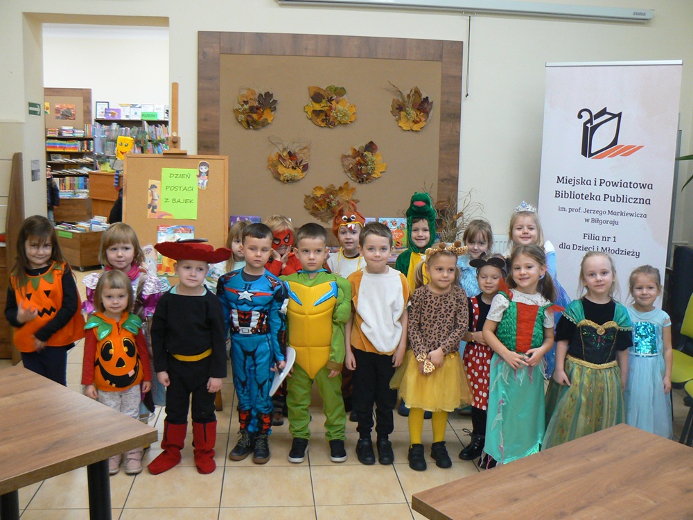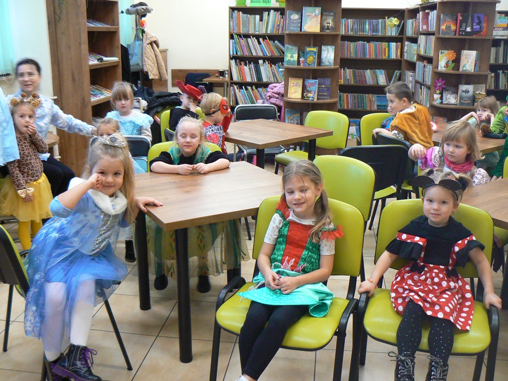 Bibliotekę dla Dzieci odwiedziły przedszkolaki z Samorządowego Przedszkola Nr 1 w przebraniach ulubionych postaci bajkowych. Było głośne czytanie, oglądanie książeczek z postaciami ze znanych dziecięcych filmów i rozmowy o ulubionych bajkach.